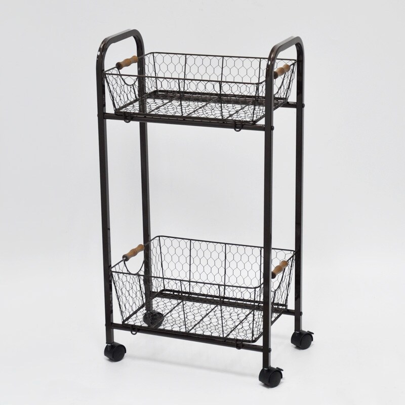 Chariot de service à 2 niveaux avec panier en fil métallique à dos roulé