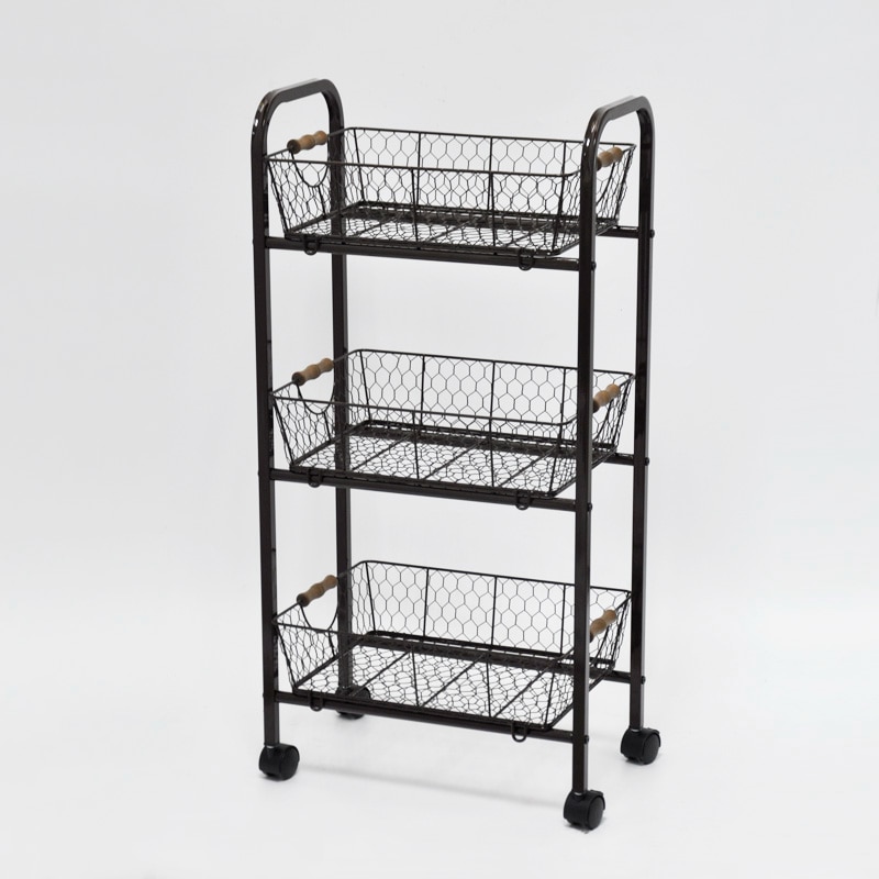 Chariot de service à 3 niveaux avec panier en fil métallique à dos roulé