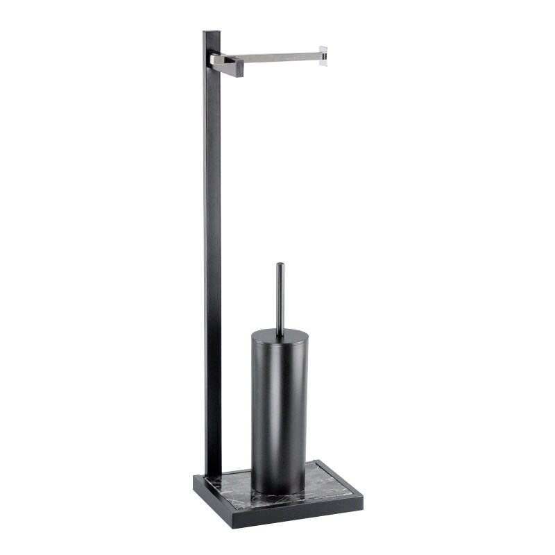 Porte-brosse de toilette en grain de marbre noir avec porte-papier