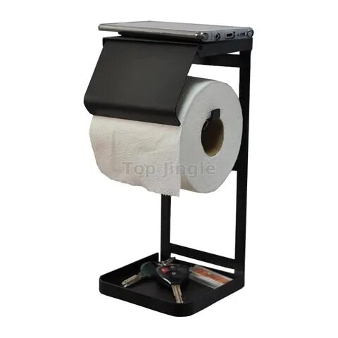 Ce porte-rouleau de papier toilette et étagère combinés est idéal pour le rangement de la salle de bain, il peut contenir des lingettes, un téléphone portable, une clé, un cendrier, une montre, etc.