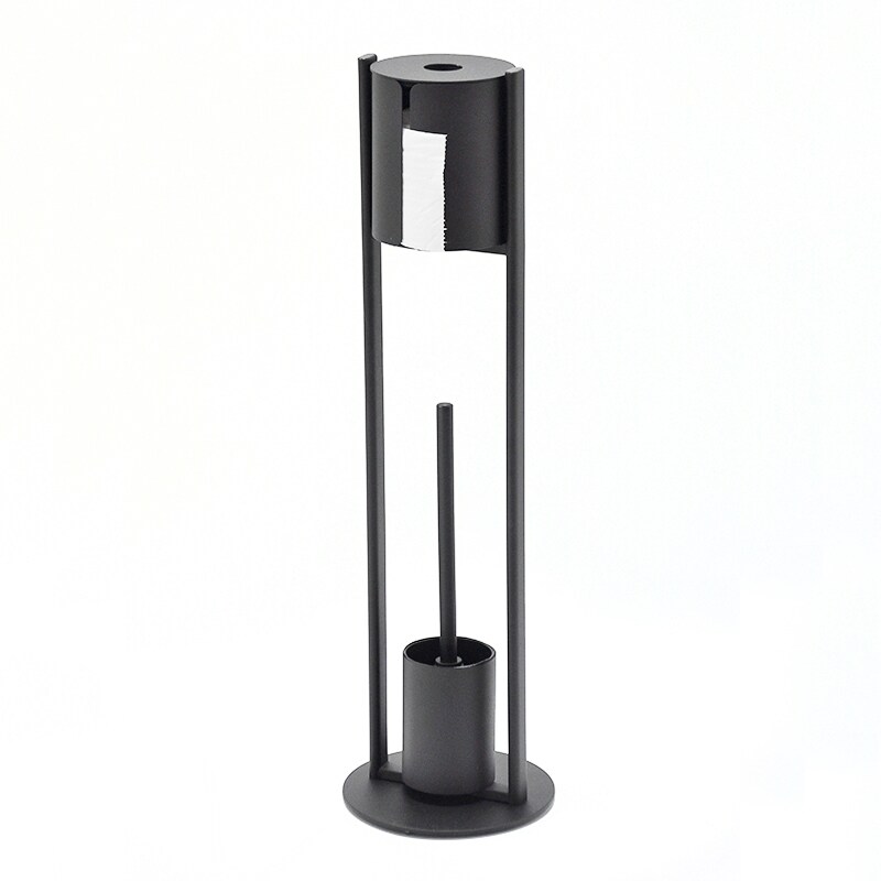 Matériau : cadre en tube ovale/porte-rouleau de papier toilette + porte-brosse en métal/poignée en revêtement sable noir.